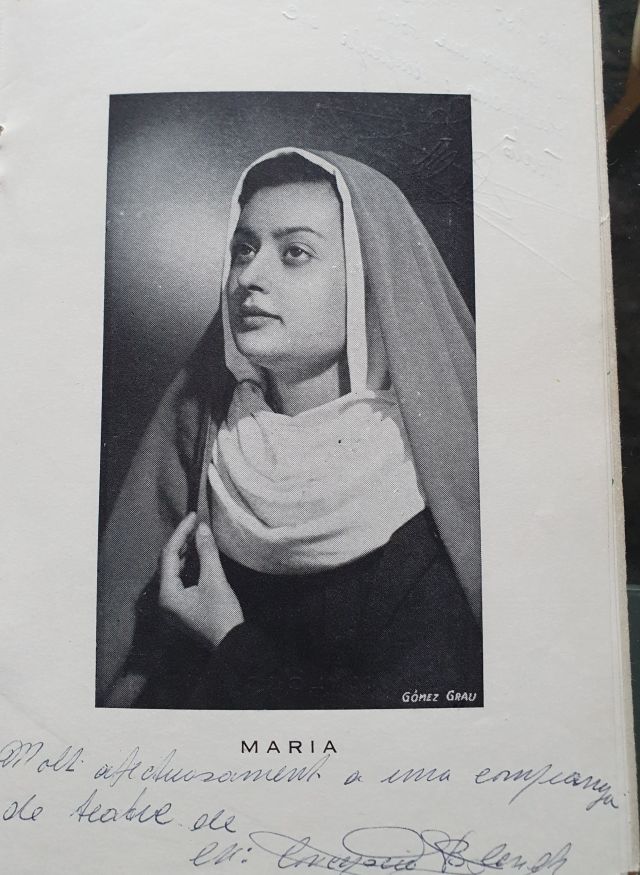 La figura femenina de Magdalena sempre ha sigut molt vistosa. Maria Rosell, guapíssima, és la jove que vèiem en aquesta fotografia. És d’admirar la voluntat d’escriure les dedicatòries en català i no trobar-hi cap errada.