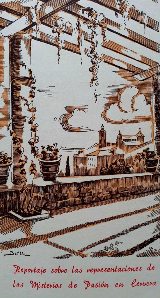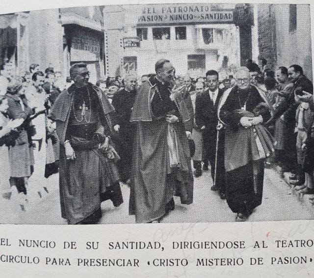 Aquesta fotografia ens dóna una informació dobre l’època i ens recorda que, el Bisbe de Solsona que, més tard, va tenir molta rellevància, era Enrique Tarancón. Està feta en motiu de la visita del Nunci de sa Santedat (el Papa de Roma), Hildebrando Antoniutti, en motiu de la visita que va fer a Cervera per veure la Passió.
