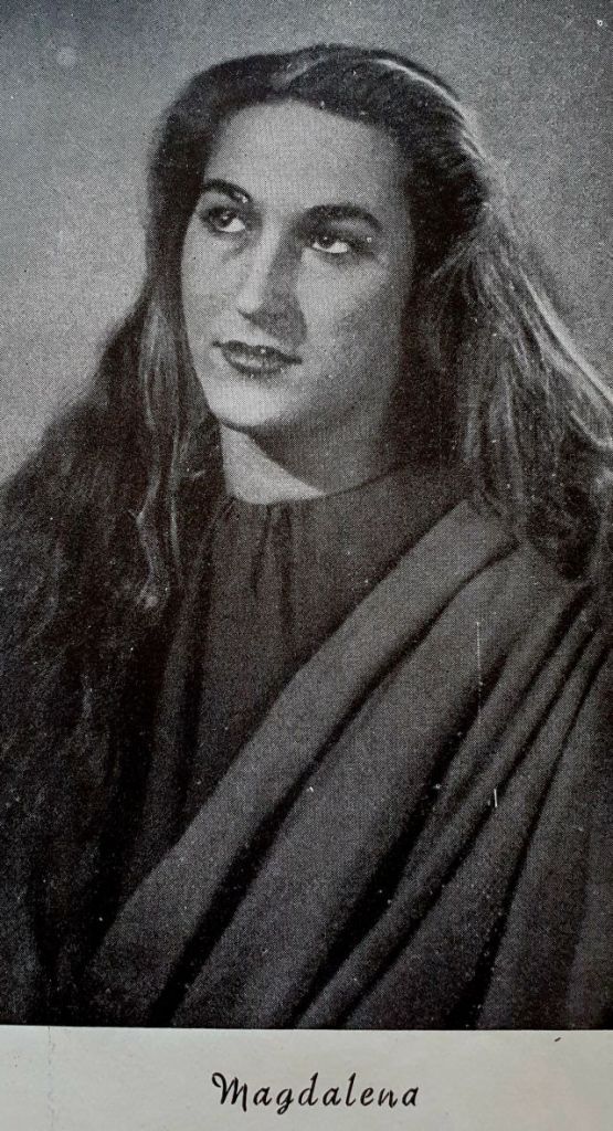 Mariana Fusté, guapíssima i joveníssima, en el seu paper de Magdalena. Es va casar amb Elias, germà d’Isabel, que feia de Maria i com s’ha explicat en el post anterior, coincidiren en les representacions.