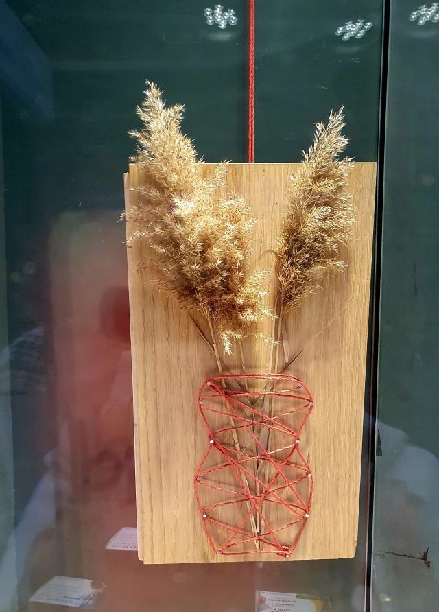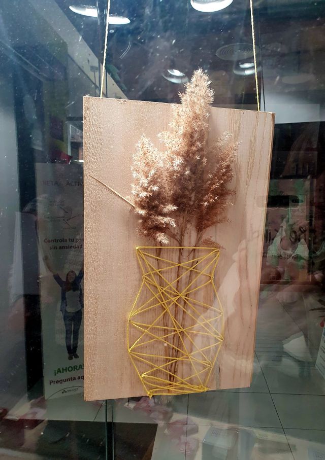 Fidel a la recerca de materials naturals ha fet servir plantes collides pels afores, una base de fusta i una corda que, entrecreuant-se dóna forma a diferents tipus de gerros.