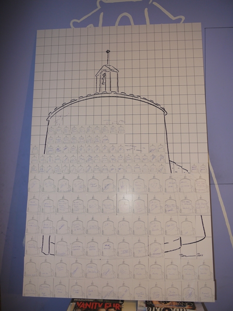 Aquest era el mural, força gran, on s’aprecien les dues mides d’enganxines i que calia completar per assolir la part econòmica del projecte.