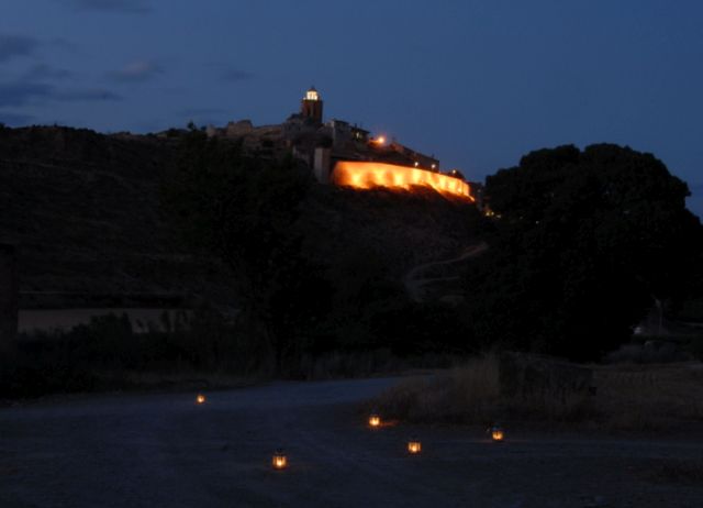 Preparant la zona amb les espelmes ja que va ser l’única il·luminació a l’espai on es van ballar les sardanes.